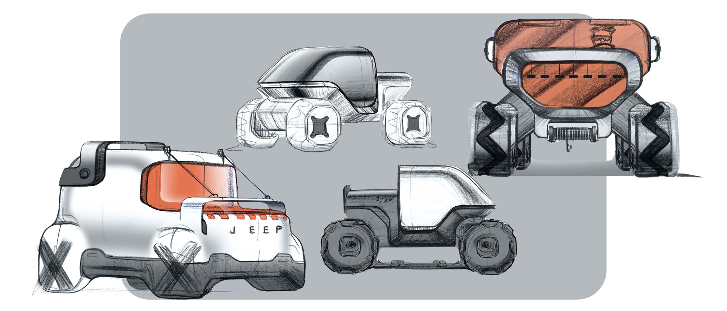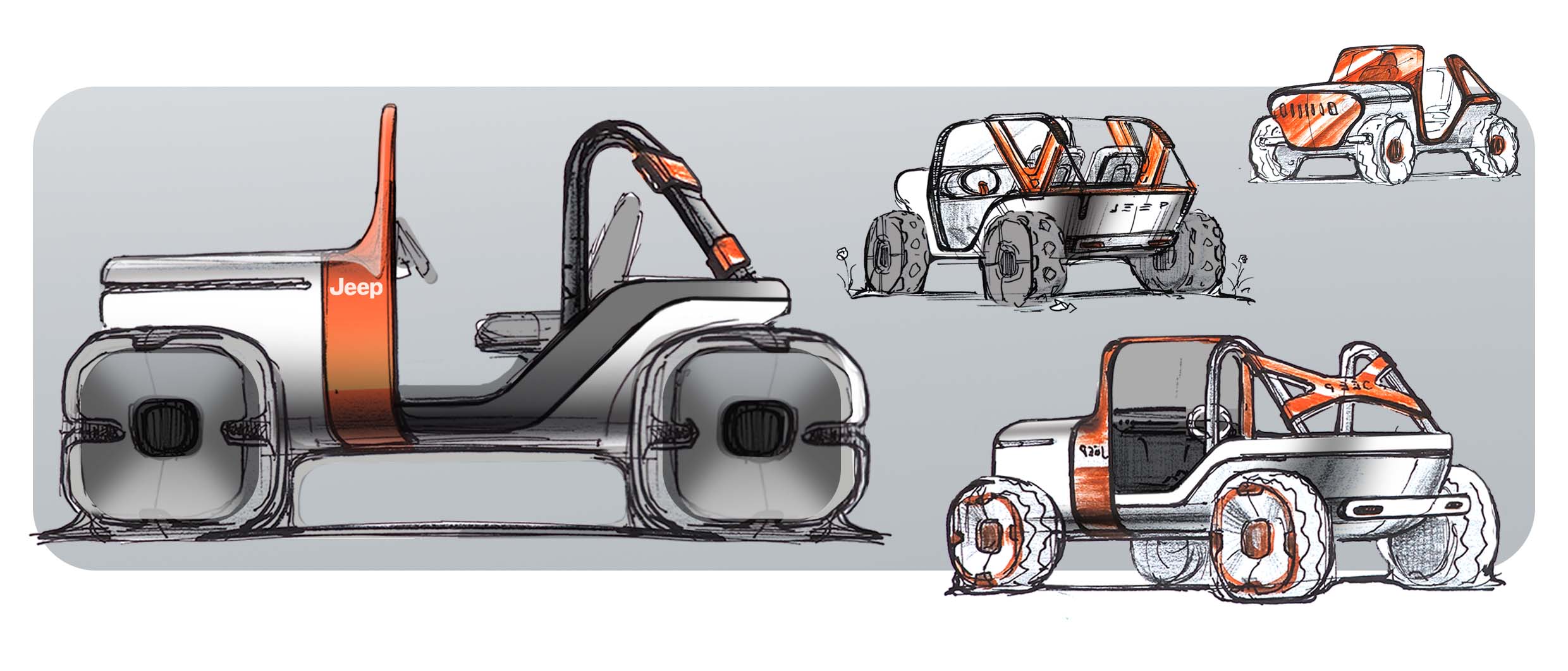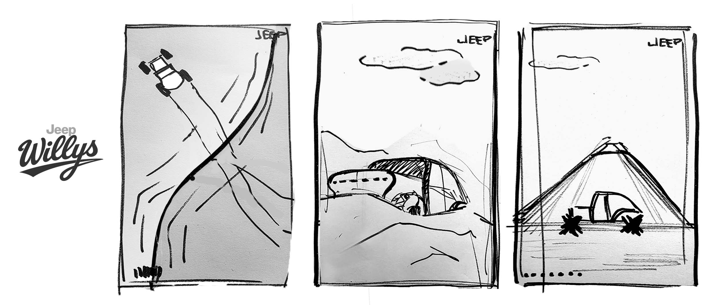 Willys Jeep A Quick And Fun Personal Project. Reimaginaning The Orginal WIllys JEEP. Pure Shapes, Iconic Look, Functional Design. Handsketching, Photoshop, Blender. And Digging Deep Into The Supporting Role Of Ai In The Design Process, Especially For Visualistion Purposes. Plaing Around With Udin Optic, Vizcom, Gemini/Nano Banana, Veo3.1 And Midjourney.